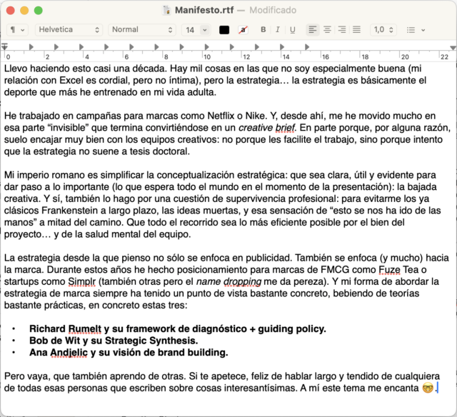 Al final, a lo tonto, llevo 10 años en el sector. Unos cuantos sin dormir por concursos y los últimos cuatro, sin dormir por facturar. En cualquiera de los casos, lo de dormir poco es una variable imposible de eludir en este sector, como tampoco lo es ser aprendiz de todo, maestra de nada. Bueno, quizá como planner puedo ser maestra de algo.